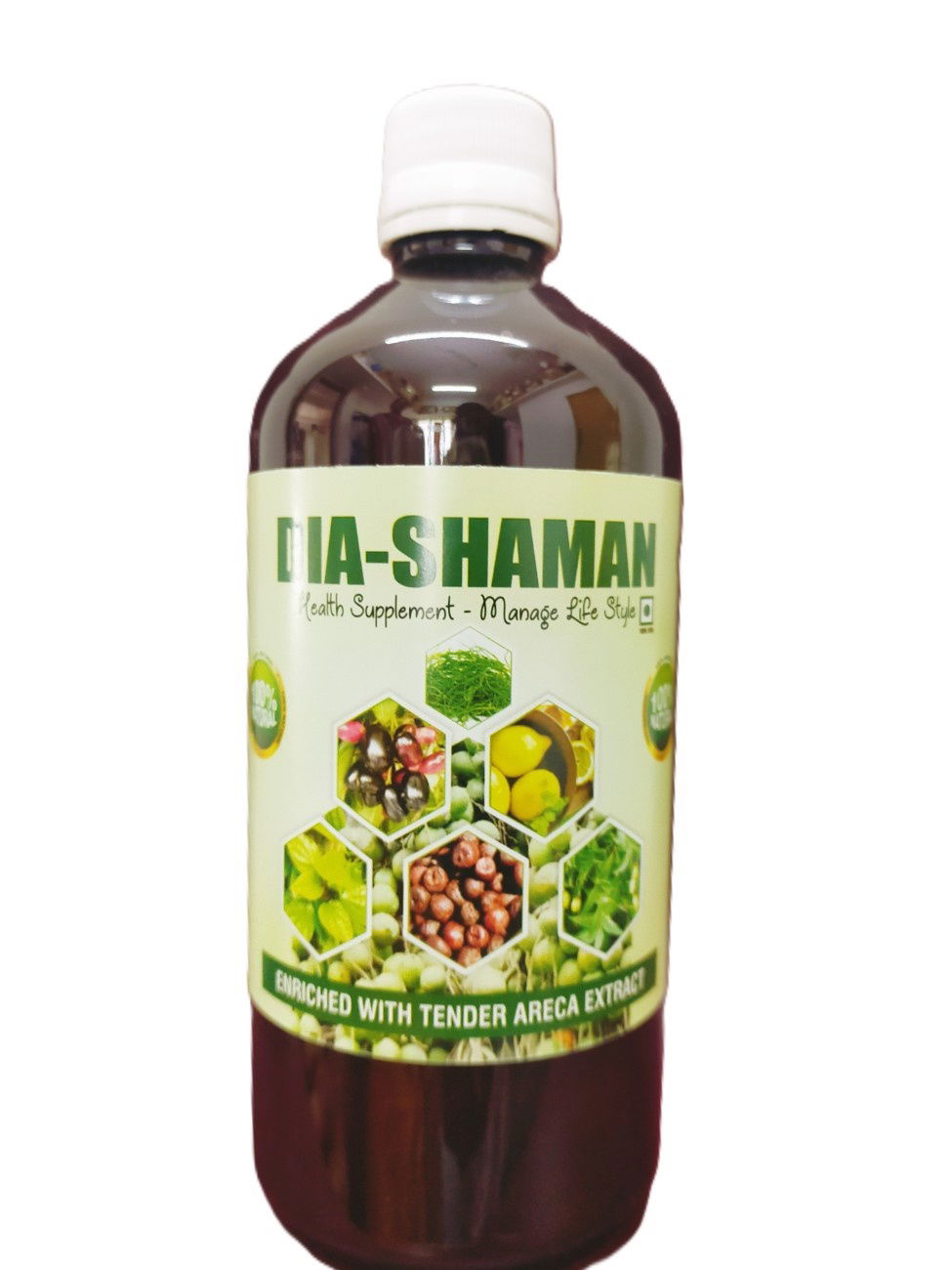 It is promoted to Pure Ayurveda Practicing Doctors and having 200+ doctors ordering this product repeatedly. There are 4 Ayurveda Hospital Colleges using the product in Karnataka In 2024, FSSAI (Food Safety Standard Association of India) central license was achieved from state license. Product is promoted for various issues along with Diabetes. The product has fan followers because of its side benefits like quick and long term benefit / remedy for foot burning sensation, knee and joint pains, stamina, sleeplessness, reduced frequent urination etc. The product being used for many such challenges, and purely BAMS doctors (Ayurveda) are well versed in its application As per the general consumption pattern, 5 ml twice in a day, 20 days each Dia Shaman Liquid is required per person in case of “Diabetes”.